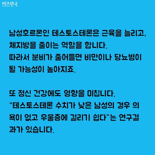 “테스토스테론 수치가 낮은 남성의 경우 의욕이 없고 우울증에 걸리기 쉽다”는 연구결과가 있습니다.