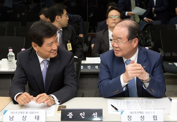 | ▲ 2015년 9월 산업은행 국감에 증인으로 나온 남상태 전 대우조선 사장(왼쪽)과 정성립 현 사장. | ||