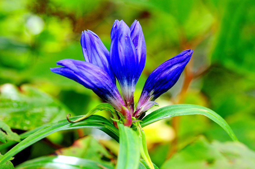 가평군 화악산 중봉에서 만난 과남풀, 청옥보다 고운 선연한 푸른빛에 눈이 부신다. 뭐라 설명하기 어려운 섬뜩할 정도의 강렬한 색상이다. 꽃이 피어도 꽃잎이 반쯤밖에 열리지 않아 먹물 가득 머금은 선비의 붓끝처럼 단정한 모습이다. 봉곳이 내미는 탐스러운 꽃망울이 터질 듯 말 듯 뭔가 수줍어 못다 피우고 머뭇거리는 듯하지만, 큼직한 꽃망울과 강한 남색이 힘차 보이기도 하다.