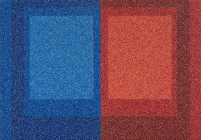 그의 작업은 분명 구상 회화지만 추상성이 강하다. 만드는 과정 자체의 방법적인 요소가 그림 전체를 아우르고 있기 때문이다.
