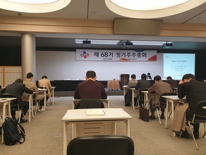 [비즈한국] CJ가 31일 서울시 중구 필동로 CJ인재원에서 정기주주총회를 개최했다. 이날 주총은 의장을 맡은 김홍기 대표이사가 진행했다. 주총은 비교적 차분한 분위기 속에서 진행됐다.