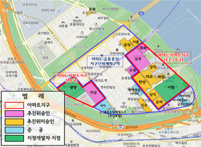 예를 들어 여의도에서 하늘색으로 구분된 단지들, 즉 여의도 자이, 트럼프월드2, 롯데캐슬아이비, 금호리첸시아, 리버타워, 라이프콤비 등 기존 구축들은 허가구역에서 제외됐다.