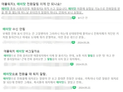 에이닷을 사용하는 20대 A 씨는 “아이폰에서 통화 녹음을 할 수 있어 좋다. 가끔 불편하지만 감내하고 사용할 만하다”고 말했다. 반면 30대 직장인 B 씨는 “워치 알림으로 전화 수신을 인지하는 게 습관이 돼 있었는데, 에이닷으로 걸려온 전화가 애플워치에서 알림이 안 와 중요한 전화를 여러 번 놓쳤다. 그래도 녹음 기능이 필요해서 어쩔 수 없이 에이닷을 사용 중”이라고 말했다.