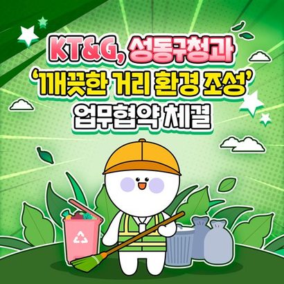 KT&G가 10월 27일, 서울 성동구청과 깨끗한 거리 환경 조성을 위한 업무협약(MOU)을 체결했습니다.