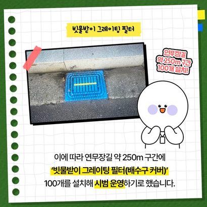 이에 따라 연무장길 약 250m 구간에 ‘빗물받이 그레이팅 필터(배수구 커버)’ 100개를 설치해 시범 운영하기로 했습니다.