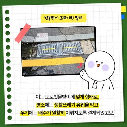 이는 도로빗물받이에 덮개 형태로, 평소에는 생할쓰레기 유입을 막고 우기에는 배수가 원활히 이뤄지도록 설계되었고요.