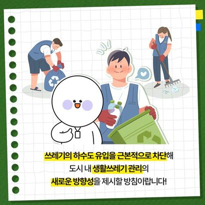 쓰레기의 하수도 유입을 근본적으로 차단해 도시 내 생활쓰레기 관리의 새로운 방향성을 제시할 방침이랍니다!