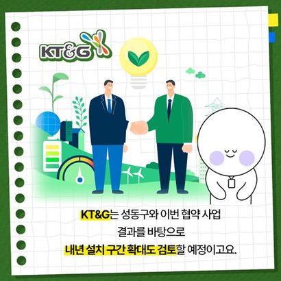 KT&G는 성동구와 이번 협약 사업 결과를 바탕으로 내년 설치 구간 확대도 검토할 예정이고요.