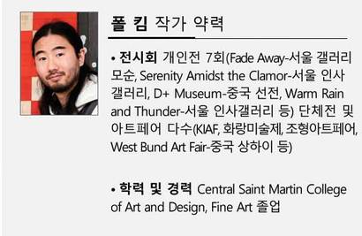 폴 킴의 작업은 엄밀히 따지면 추상화가 아니다. 추상화의 구성과 방법을 빌어 자신의 생각을 이야기하고 있기 때문이다. 그러면 왜 추상 형식을 택하고 있는가. 그것은 작가가 그림에다 담으려는 생각 자체가 매우 추상적인 것이기 때문이다. 무슨 생각일까.