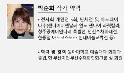 박준희는 이런 추상 방식으로 철학적 개념을 담아낸다. 그는 색채를 입힌 한지를 켜켜이 쌓아서 화면을 구성한다. 재료의 물질감과 색채의 성질을 결합해 새로운 느낌의 추상화를 보여준다. 층층이 쌓은 색지 사이 오묘한 색채의 변화와 깊이감을 통해 우리 속에 숨어있는 또 다른 모습을 찾으려고 한다.