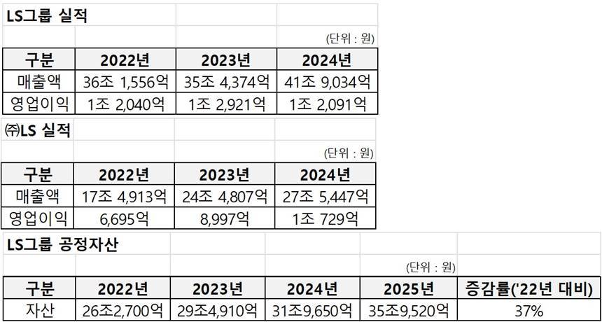 2022년 26조 2700억 원이었던 LS그룹의 공정자산은 이듬해인 2023년 29조 4910억 원, 2024년 31조 9650억 원, 2025년 35조 9520억 원으로 꾸준히 증가했다. 4년 사이 37%, 약 10조 원가량 늘어난 셈이다.