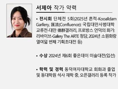 서제아 작가도 성장통을 주제로 한 작업으로 주목을 받는다. 작가로 성장하면서 겪었던 아픔과 자신 또래가 통과의례처럼 겪어낸 성장통을 은유적 표현으로 담는 회화다.